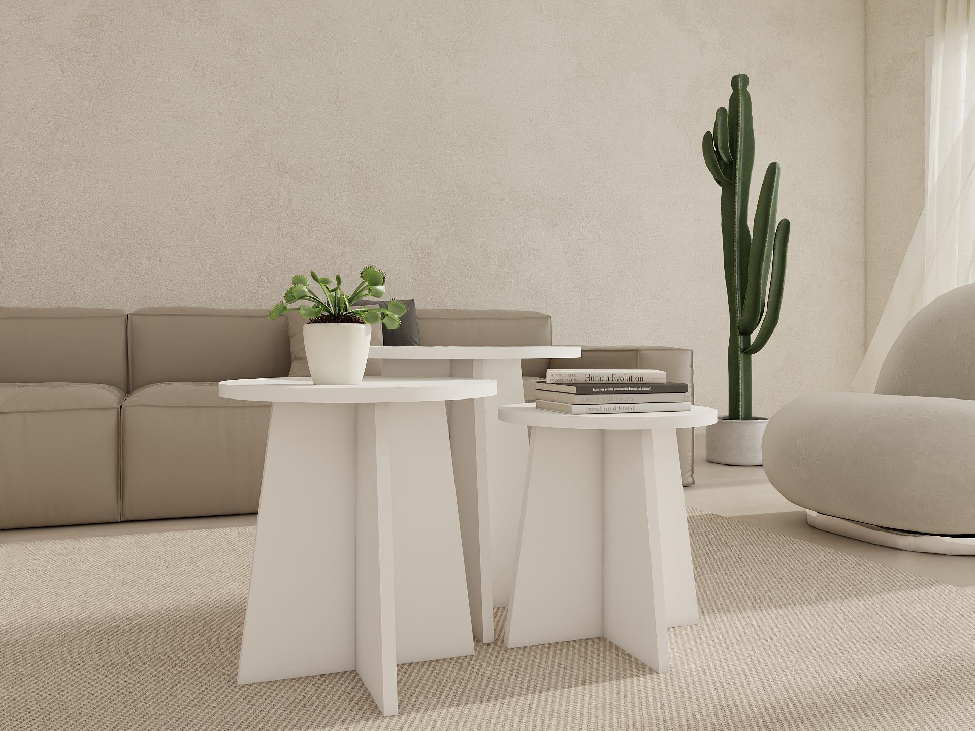 3’lü zigon sehpa, fonksiyonel yapısı ve sade tasarımıyla yaşam alanlarında pratik kullanım sunar. İç içe geçebilen üçlü yapısı sayesinde yer tasarrufu sağlar ve ihtiyaç anında kolayca kullanılabilir.