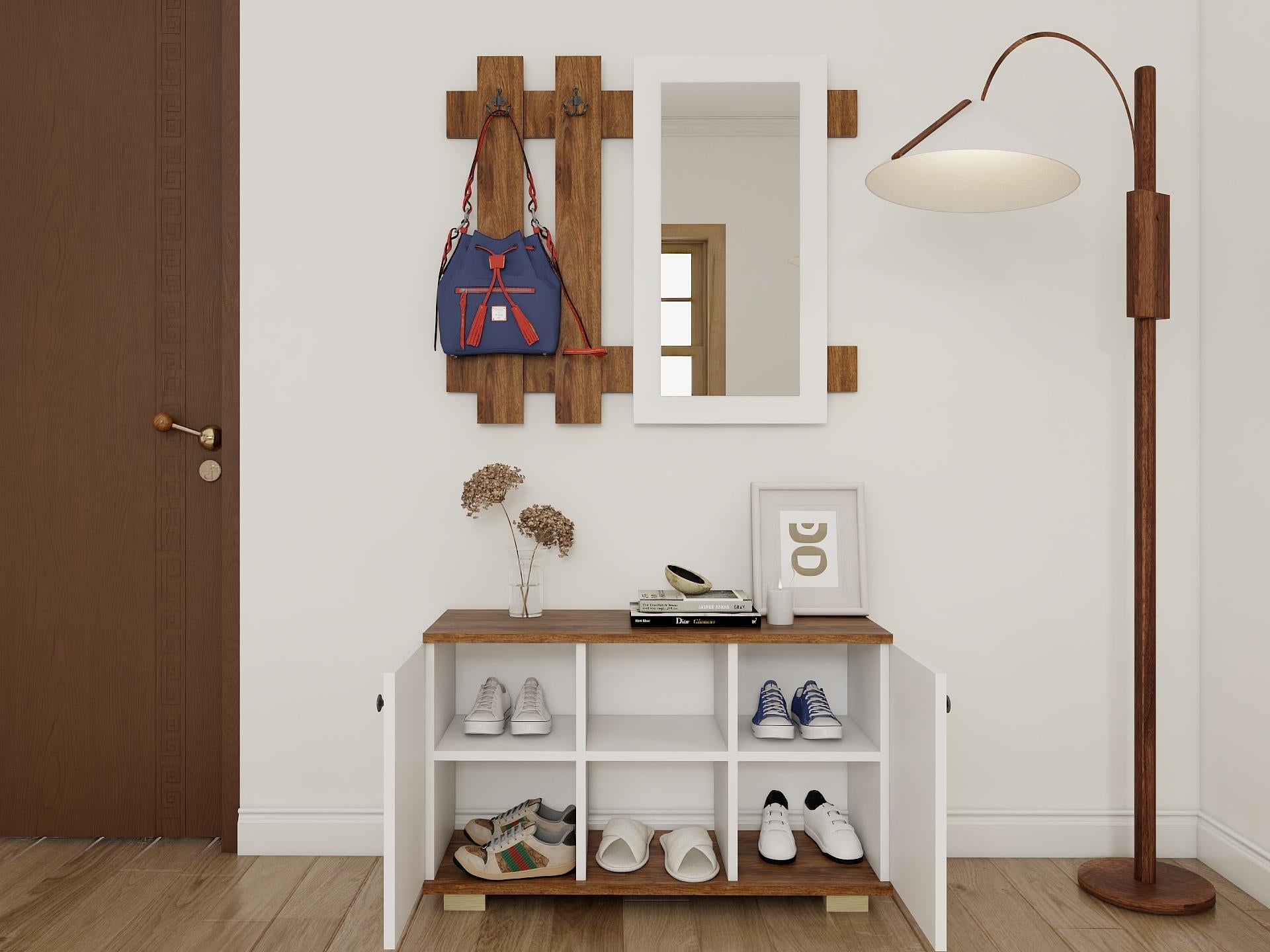 Ayakkabı dolabında yer alan ürünler dekor amaçlıdır.